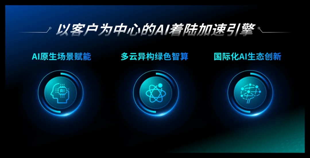 活动现场,首次宣布AGI时代的新价值主张,未来将以客户为中心,围绕AI原生场景赋能、多云异构绿色智算、国际化AI生态创新三个锚点,打造AI着陆加速引擎,助力千行百业实现价值重构。